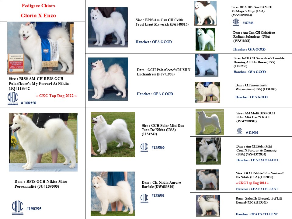 Gloria a été accouplée avec Enzo et les chiots pourraient être disponibles à la fin du mois de Mai. Il reste encore quelques places sur cette portée. Ce sera la dernière portée de Gloria qui sera ensuite placée à la retraite dans une famille.